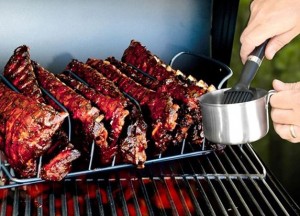 - 4-piece set comes with a nonstick rib rack, smoker box, BBQ sauce cup, and a silicone basting brush. All you need to cook your ultimate ribs