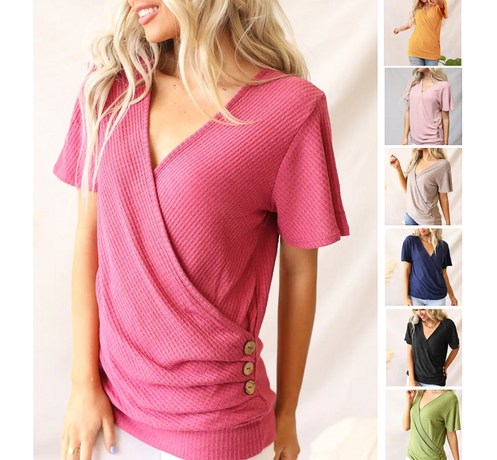 This is such a cute top with the waffle texture and the button details on the side!