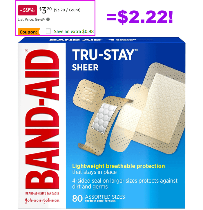 Band-Aid Brand Tru-Stay Sheer Strips Adhesive Bandages, Assorted Sizes, 80 ct for $3.77 (reg $5.21)!