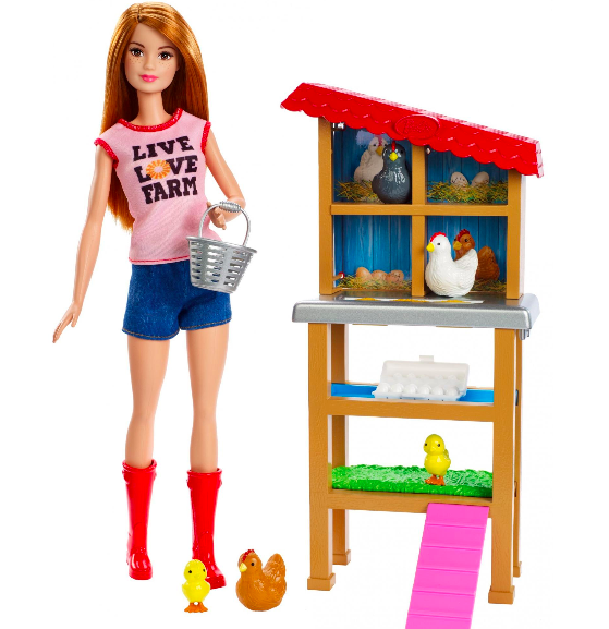 - Dream big and go places with Barbie dolls and toys that have workspace themes — young nurturers can play out caring for a favorite farm animal with Barbie chicken farmer doll and her chicken coop!