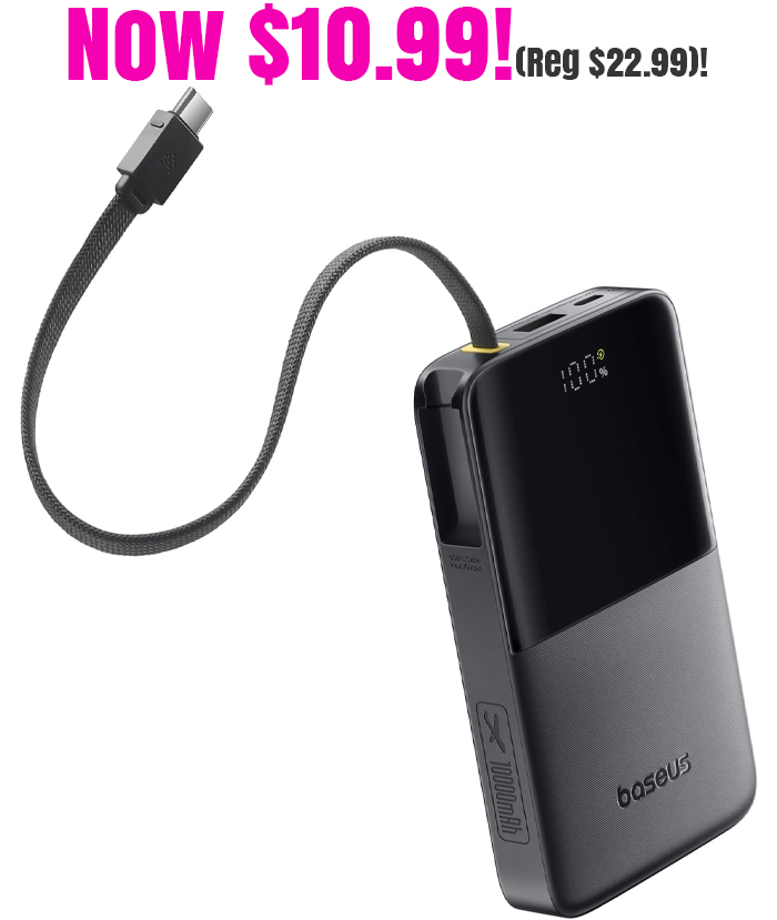 Baseus 10000mAh Fast Charging Power Bank, 22.5W PD3.0 QC3.0 with Built-in USB C Braided Cable for $17.99 (Reg $22.99)