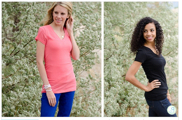 Basic V-Neck Tee $9.99 – Buy One Get One Free! Which means you will only pay $4.50 each! Plus they ship FREE!!