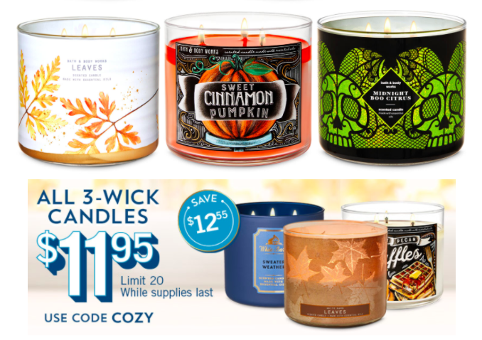 Exciting news, Bath & Body Works is having a sweet sale on their 3-Wick Candles! This sale is today only 8/13 and only online or where stores are open. Enter the promo code COZY at checkout and these candles are only $11.95 (Reg. 24.50)