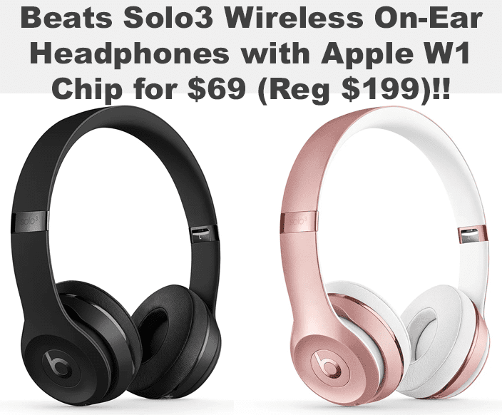 Beats Solo3 Wireless On-Ear Headphones with Apple W1 Headphone Chip for $69 (Reg $199)!