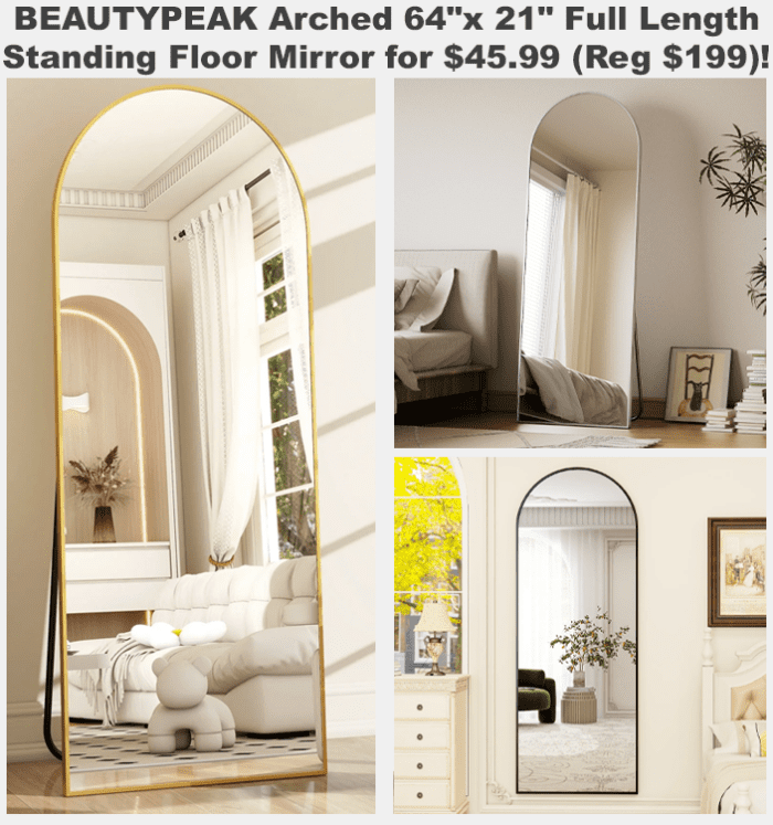 BEAUTYPEAK Arched 64″x 21″ Full Length Standing Floor Mirror for $39.99 (Reg $199)!