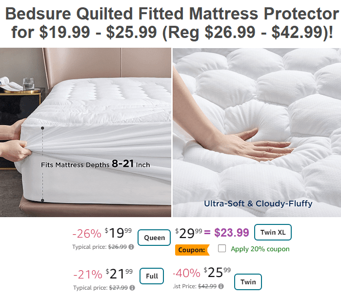 Bedsure Quilted Fitted Mattress Protectors for $19.99 – $25.99 (Reg $26.99 – $42.99)!