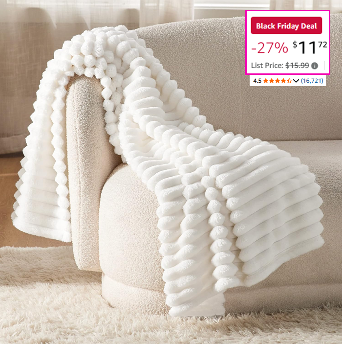 You don’t have to spend a fortune for a super soft, luxurious throw! There are more colors and sizes available, but this one is the best price. Plus, it goes with every decor style and elevates any space!