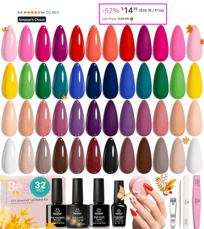Beetles Gel Nail Polish 25 Colors with 3Pcs Base/Top Coats for $15.99 (Reg $29.99)
