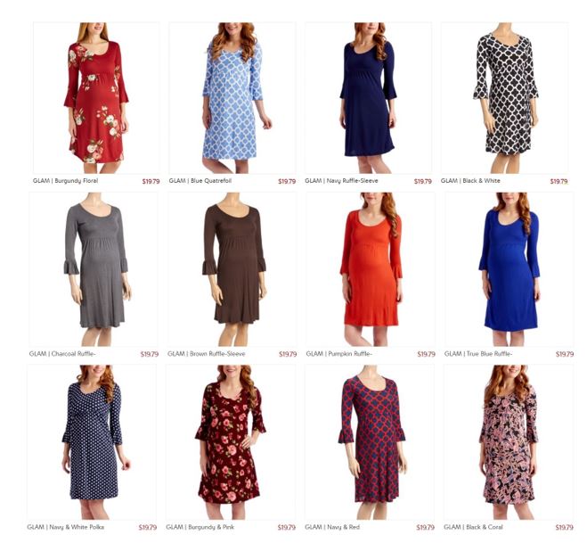 This is the cutest Maternity Dress! I love the bell sleeves. It comes in dozens of patterns. It would look super cute with leggings and boots for colder weather. Only $19.79 (regularly $70)