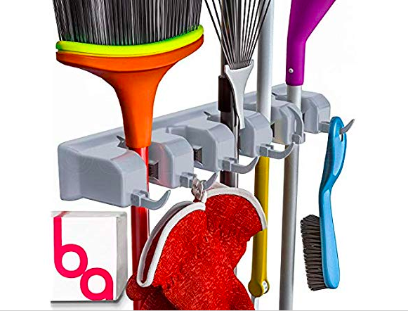 - Tidy up your broom, mop, rakes, tools and more! Mount on the wall of your kitchen, closet storage, garage, shed, or office. Great for commercial use and, thanks to the rack’s weatherproof design, this holder even works outdoors or in the shed for your garden tools!