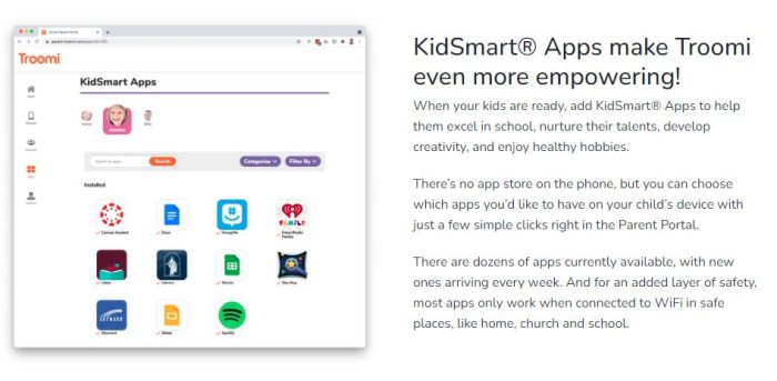 Troomi is a kid’s safe phone controlled by you the parent through the Troomi Parent Portal. You can make changes here such as: approving apps, seeing where your child is, SafeList phone numbers that can call or text your kids (or you have the option to leave it open), remote text monitoring, and SO MUCH MORE!!