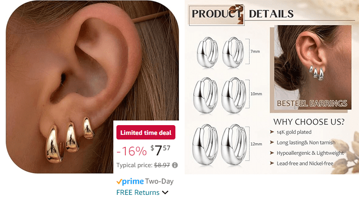 BESTEEL 3 Pairs Hoop Earrings for $7.57 (Reg $12.99)!