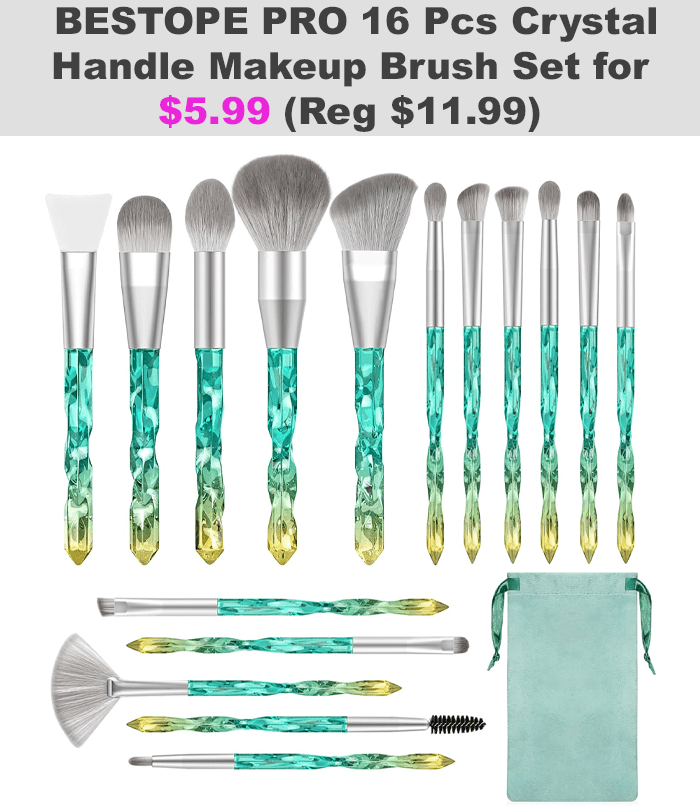 BESTOPE PRO 16 Pcs Crystal Handle Makeup Brush Set for $11.99
