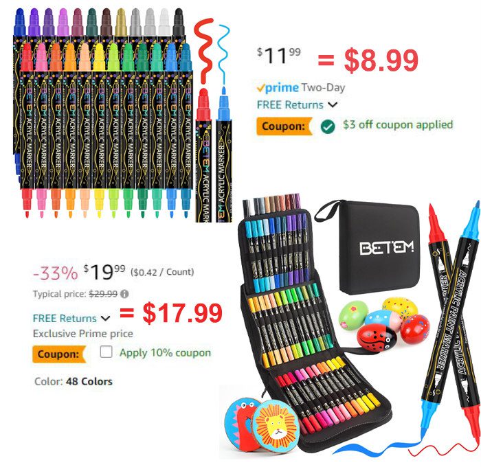 Betem 48 Colors Paint Markers Acrylic Paint Pens with Case for $19.99 (Reg $29.99)!