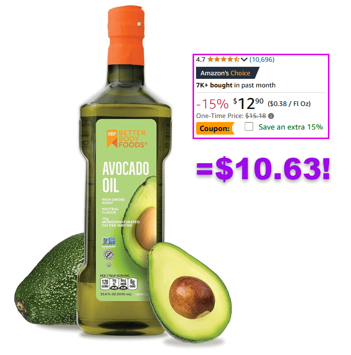 BetterBody Foods Avocado Oil, 1 Liter, 33.8 Fl Oz for $15.18