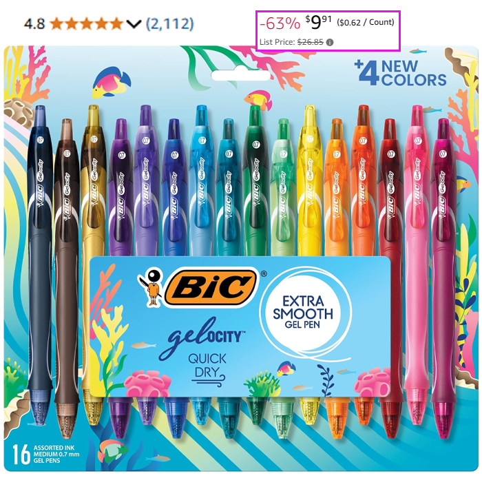 BIC Gelocity Quick Dry Ocean Themed Gel Pens, Medium Point (0.7mm), 16-Count for $11.01 (Reg $26.85)
