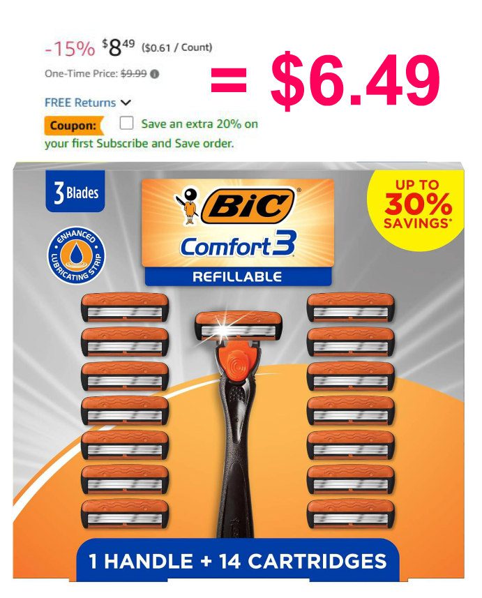 BIC Refillable Disposable Razors for Men (1 Handle + 14 Cartridges) $9.99