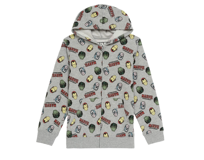 If you have a kid who’s a Marvel fan, they’ll love this fleece hoodie jacket dotted with the likenesses of Iron Man, the Hulk, Captain America, and the Marvel logo!