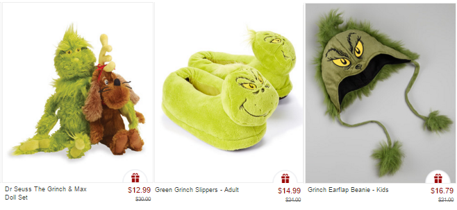 Christmas just isn’t Christmas with out our furry green friend, the Grinch. Find adorable clothes, toys, and christmas decorations, all over at zulily for great prices! There’s also a ton of Dr. Seuss products.