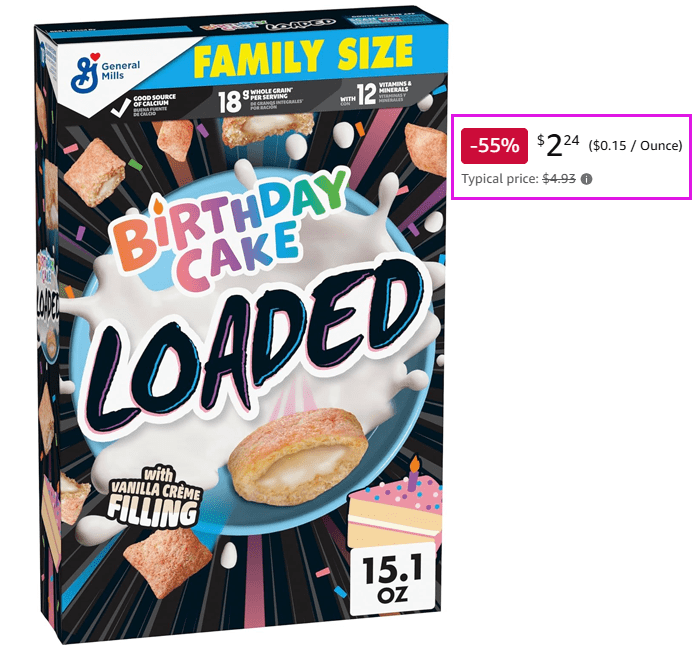 Birthday Cake Loaded Cereal, Family Size, 15.1 Oz for $2.64 (Reg $4.93)