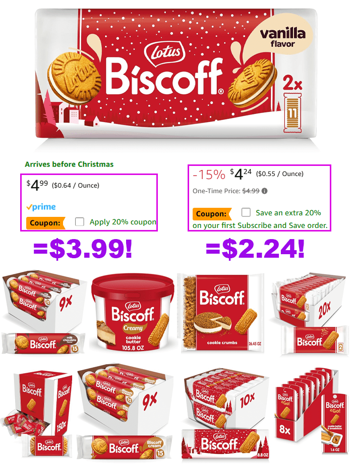 YUM! There’s a coupon that works on a bunch of Biscoff products! Most will make it in time for Christmas if you select one-time purchase, or select Subscribe and Save for even more savings.