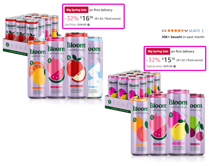 Bloom Nutrition Sparkling Energy Drink, Variety 12-Pack for $18.57 – $19.99 (Reg $24.99)
