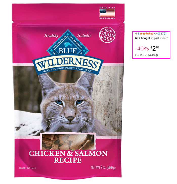 Blue Buffalo Wilderness Grain Free Soft-Moist Cat Treats, Chicken & Salmon 2-oz Bag for $2.98 (Reg $4.49)
