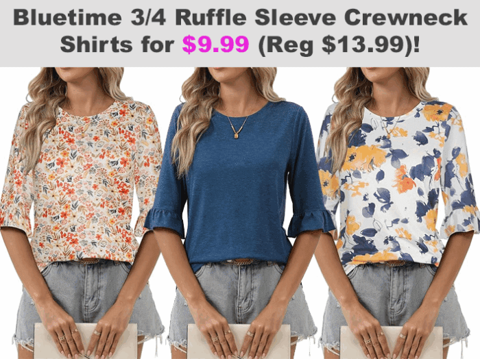 Bluetime 3/4 Ruffle Sleeve Crewneck Shirts for $9.99 (Reg $13.99)!
