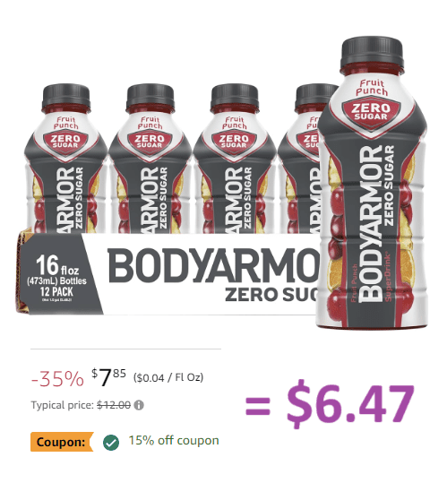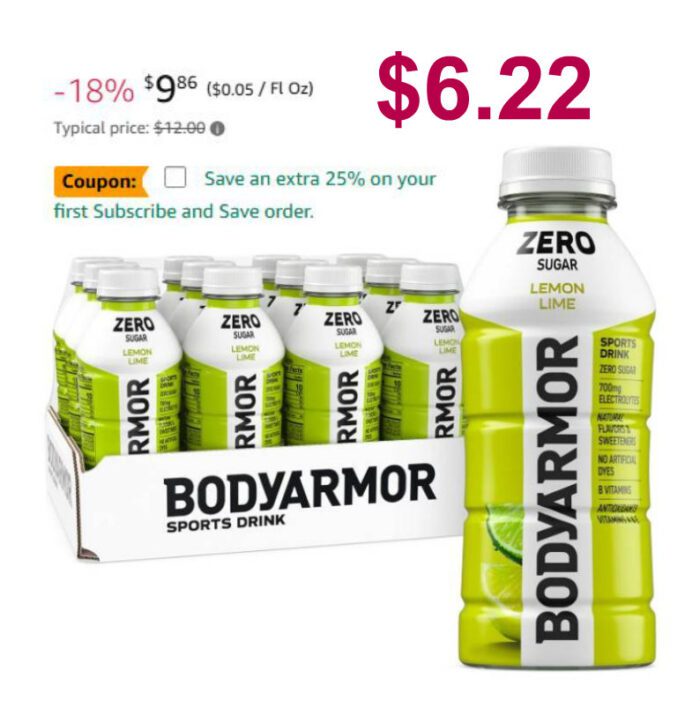 BODYARMOR ZERO Sugar Lemon Lime, 16 fl oz (pack of 12) for $9.24 (Reg $12)!