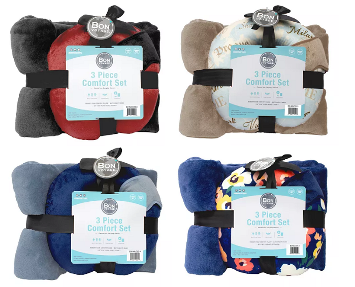 Bon Voyage Travel Pillow, Blanket, & Eye Mask Set for $9.99 (Reg $40)!
