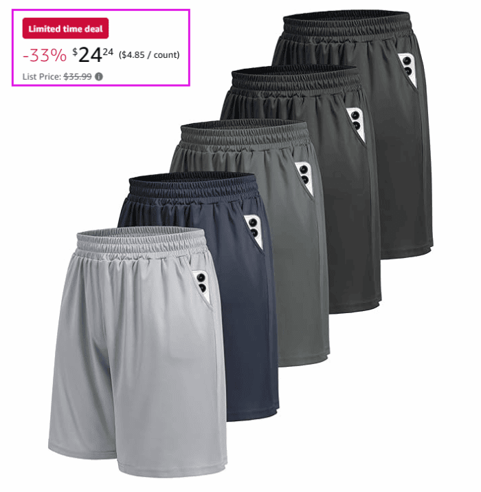 BOOJO 5 Pack Athletic Gym Mens Shorts from $24.24 (Reg $35.99)!