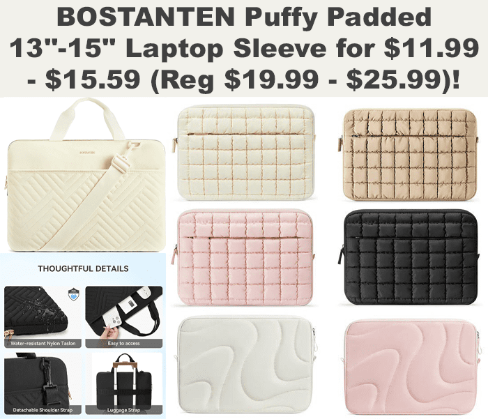 BOSTANTEN Puffy 13”-15” Laptop Sleeve for $19.99 – $25.99
