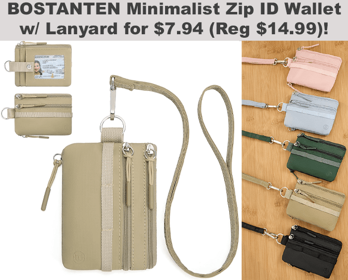 BOSTANTEN Small Wallet RFID Minimalist Zip Wallet with Lanyard for $14.99