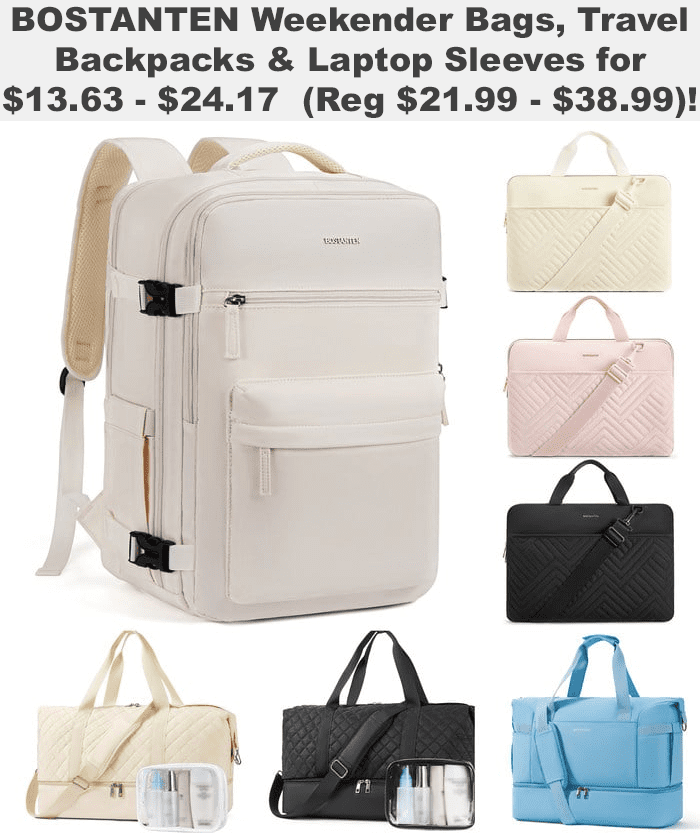 BOSTANTEN Weekender Bags, Travel Backpacks & Laptop Sleeves for $21.99 – $38.99