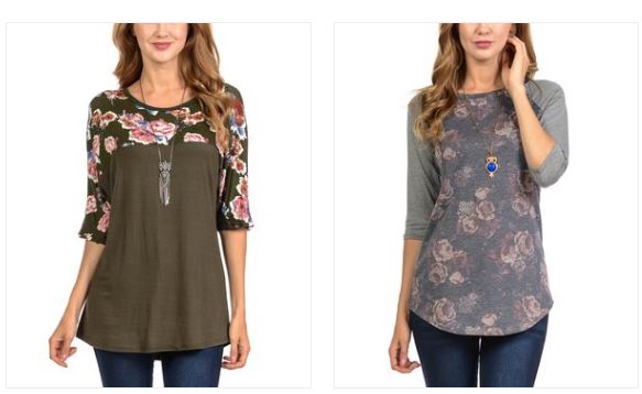What are you buying with your $10 of $20 offer from Zulily? How about these cute floral tops! These are identical to ones I saw at a boutique last week selling for $25-$30! Tops start at only $12.99 and there are so many cute options to choose from.