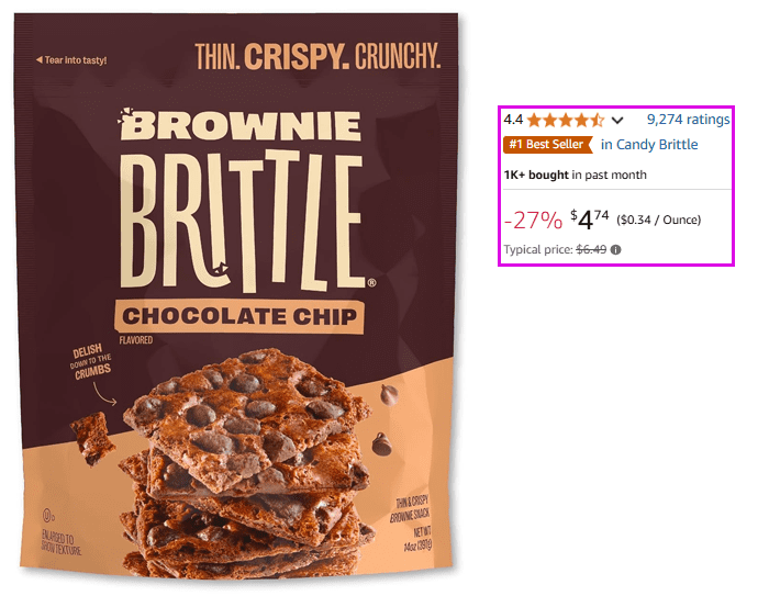 Brownie Brittle – Original Chocolate Chip Thin and Crispy Sweet Snacks, Family Size 14 oz for $4.99 (Reg $6.49)