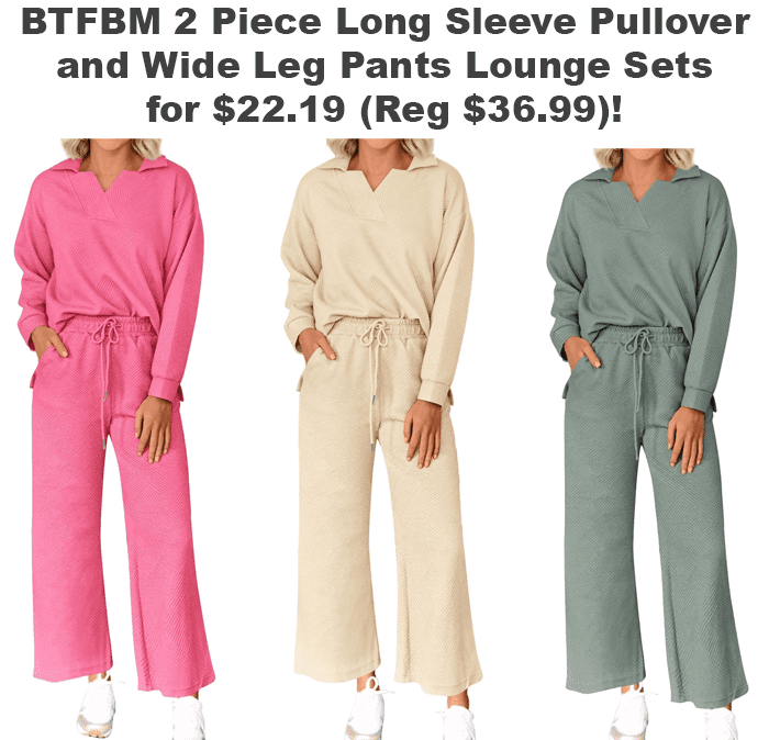 BTFBM 2 Piece Long Sleeve Pullover and Wide Leg Pants Lounge Sets for $36.99