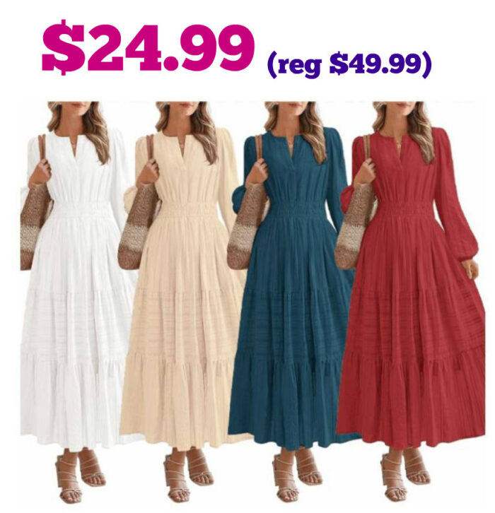 BTFBM V Neck Long Sleeve Maxi Dress with Pockets for $49.99