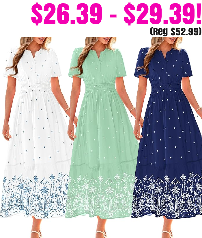 BTFBM V-Neck Short Sleeve Boho Maxi Dresses for $43.99 – $48.99 (Reg $52.99)