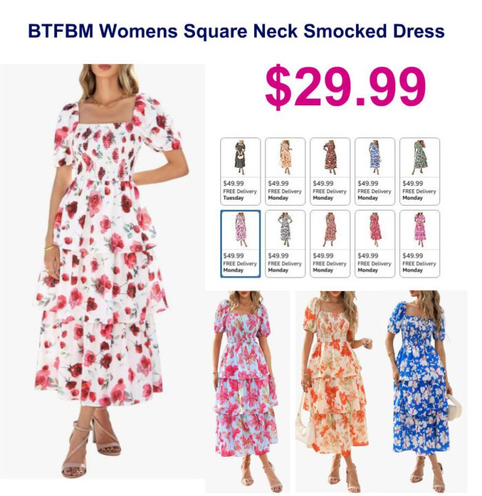 BTFBM Women’s Square Neck Smocked Dress $49.99