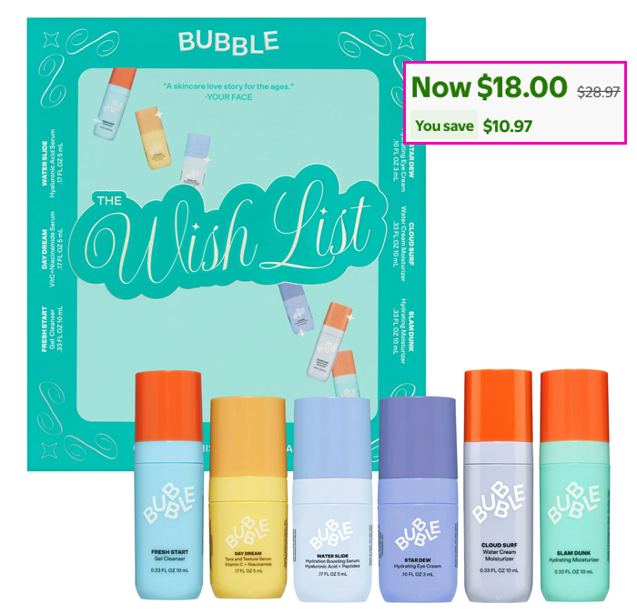 Bubble Skincare The Wish List Mini Essentials Set for $18 (Reg $28.97)!