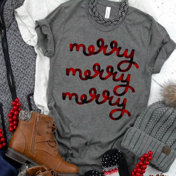 These popular buffalo plaid holiday tees are back!