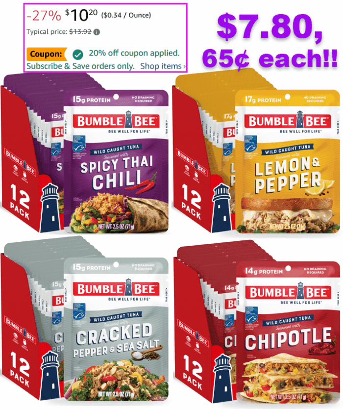 Bumble Bee Seasoned Tuna, 2.5 oz Pouches (Pack of 12) for $12 (Reg $13.92)
