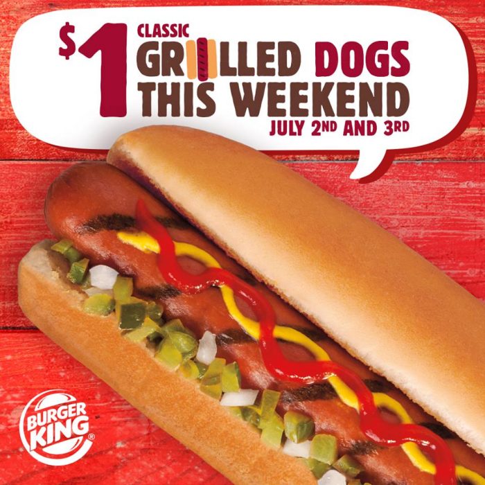 If you are like me, you have a TON planned this weekend. Make lunch easy and head on over to Burger King to grab their Classic Grilled Dogs for just $1.00 each!
