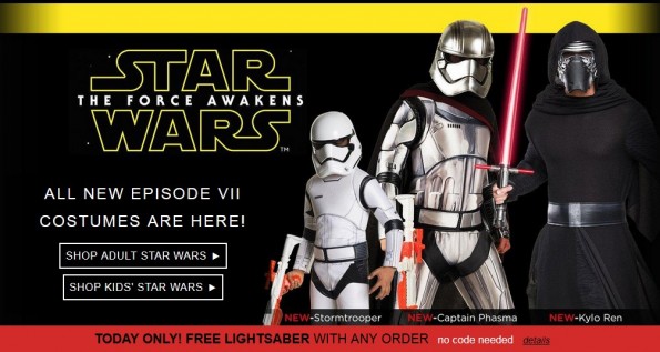 The force is with you this Friday, September 4th! When you make a purchase at BuyCostumes on 9/4, you’ll get a free lightsaber! No code or minimum purchase amount is needed, but this incredible gift is only available for one day — 9/4. BuyCostumes will also be releasing new Star Wars costumes just in time for Halloween. Plus, they will continue to run $4.99 flat rate shipping during this time.