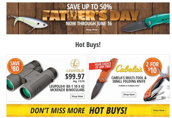 Cabela’s Father’s Day Sale just began today! You can save up to 50% now through June 16. But don’t wait to shop, the best deals will sell out!