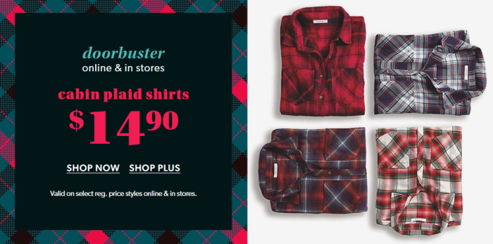 Cabin Plaid Button Down Shirts for $14.90 (Reg $34.90)!