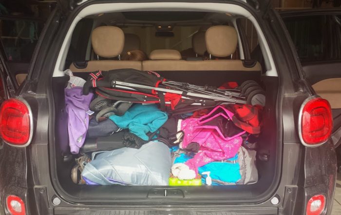 Well, I was PLEASANTLY surprised. The Fiat 500L is super nice and surprising roomy. We had plenty of space for the four of us and all of our stuff. We did pack a little bit lighter than we normally do, but that was nice too. We ended up with just what we needed and not a ton of extra junk that we wouldn’t use anyway. We could have even fit more.