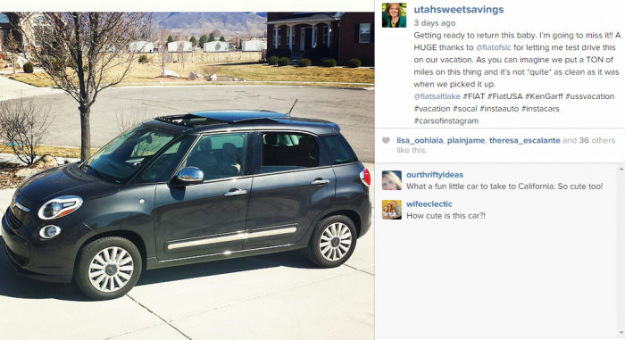 Thanks to Ken Garff Fiat of Salt Lake for allowing us this extended test drive while we were on our trip in So Cal. As always, all opinions are our own. We only recommend products or services that we believe will be beneficial to our readers.