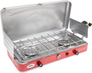 - Convenient carry handle makes it easy to transport the Camp Chef Everest 2-burner stove